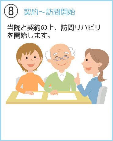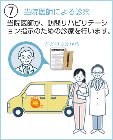 ● 訪問リハビリテーションを開始するにあたり、当院医師が訪問リハビリテーション指示のための診療を行います。